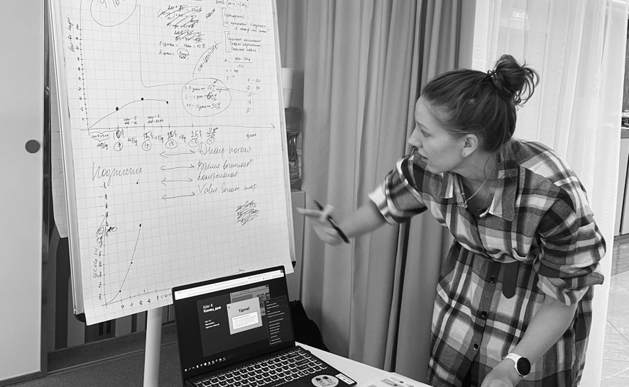Мы решали все вопросы личного отношения к задачам, заказчикам, команде, которые мешали двигаться чисто и эффективно, с помощью GSR-сессий. Прорабатывали личные цели, их связку с компанией, ресурсы и потенциал совместного будущего.