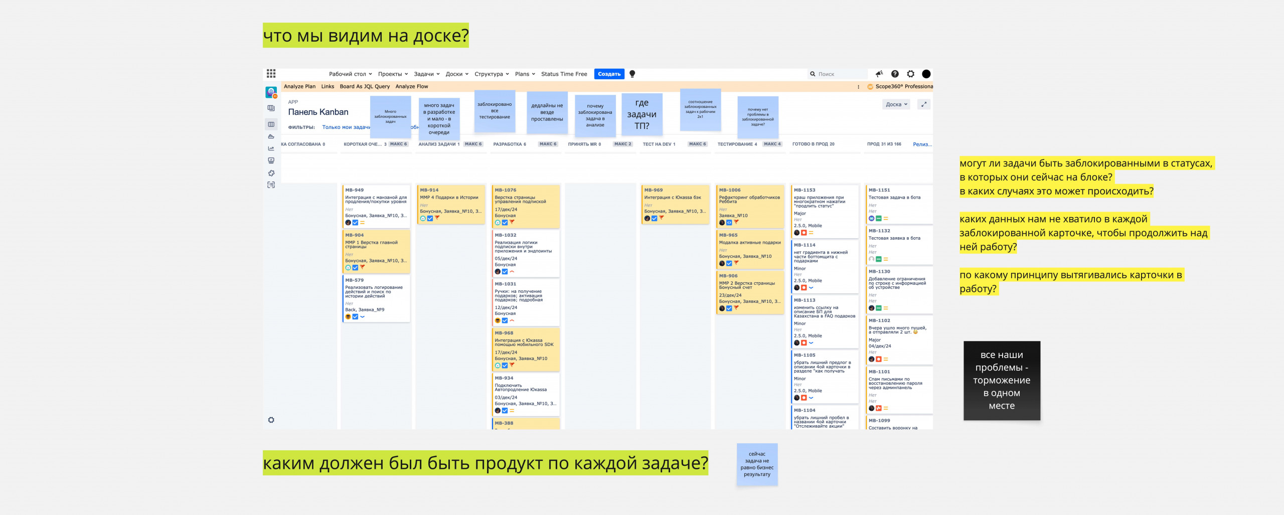 К этому моменту компания уже круто разбиралась в своём деле. И с точки зрения проставляемого IT-продукта, и с точки зрения управления работой. Базовые Канбан-практики прижились и дали ресурс для улучшения пропускной способности, качества и своевременности поставки. Комада выросла в анализе работы, научилась оценивать влияние задач на и выполнение обязательств перед заказчиком, и на финансовый результат.