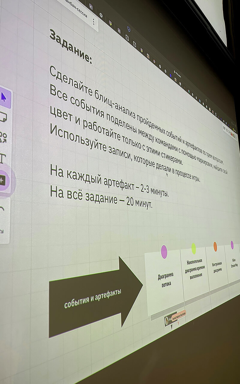 2 часа: Анализ работы канбан-системы: практик визуализации задач, распределения нагрузки, управления пропускной способностью, работы с метриками и взаимодействия в команде. Цель — интегрировать полученный опыт, закрепить понимание, как создать свою канбан-систему и успешно в ней работать.
