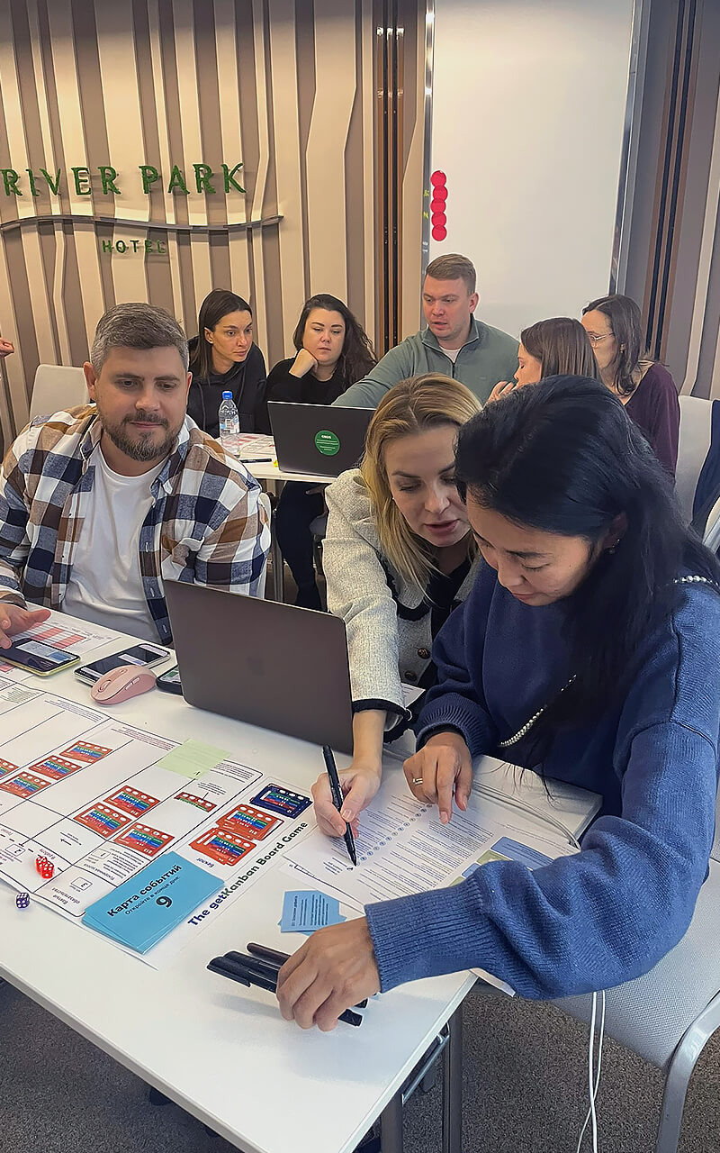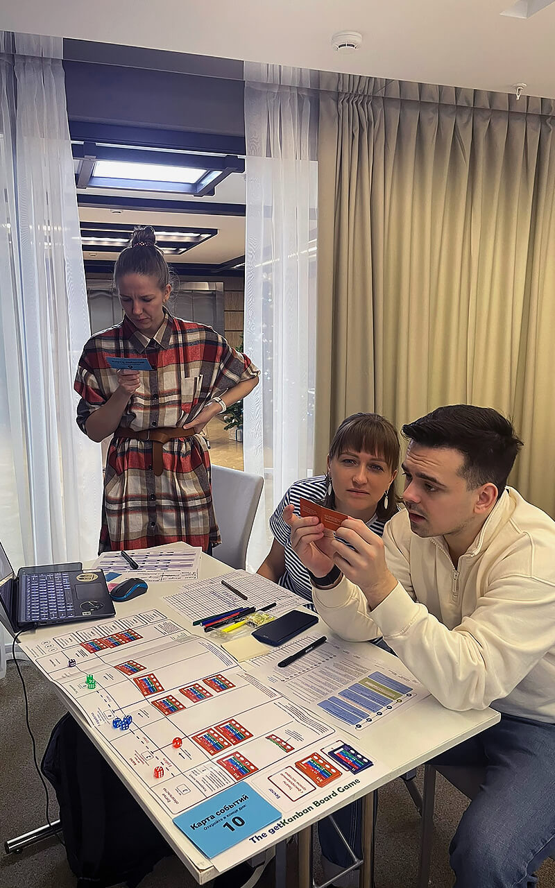 3 часа: Игра getKanban — это культовый бизнес-симулятор, который создан для передачи Канбан-метода. Цель — попробовать канбан-систему в деле. Продвинуть задачи к выполнению, управлять скоростью и результатом, продуктивно взаимодействовать в команде.