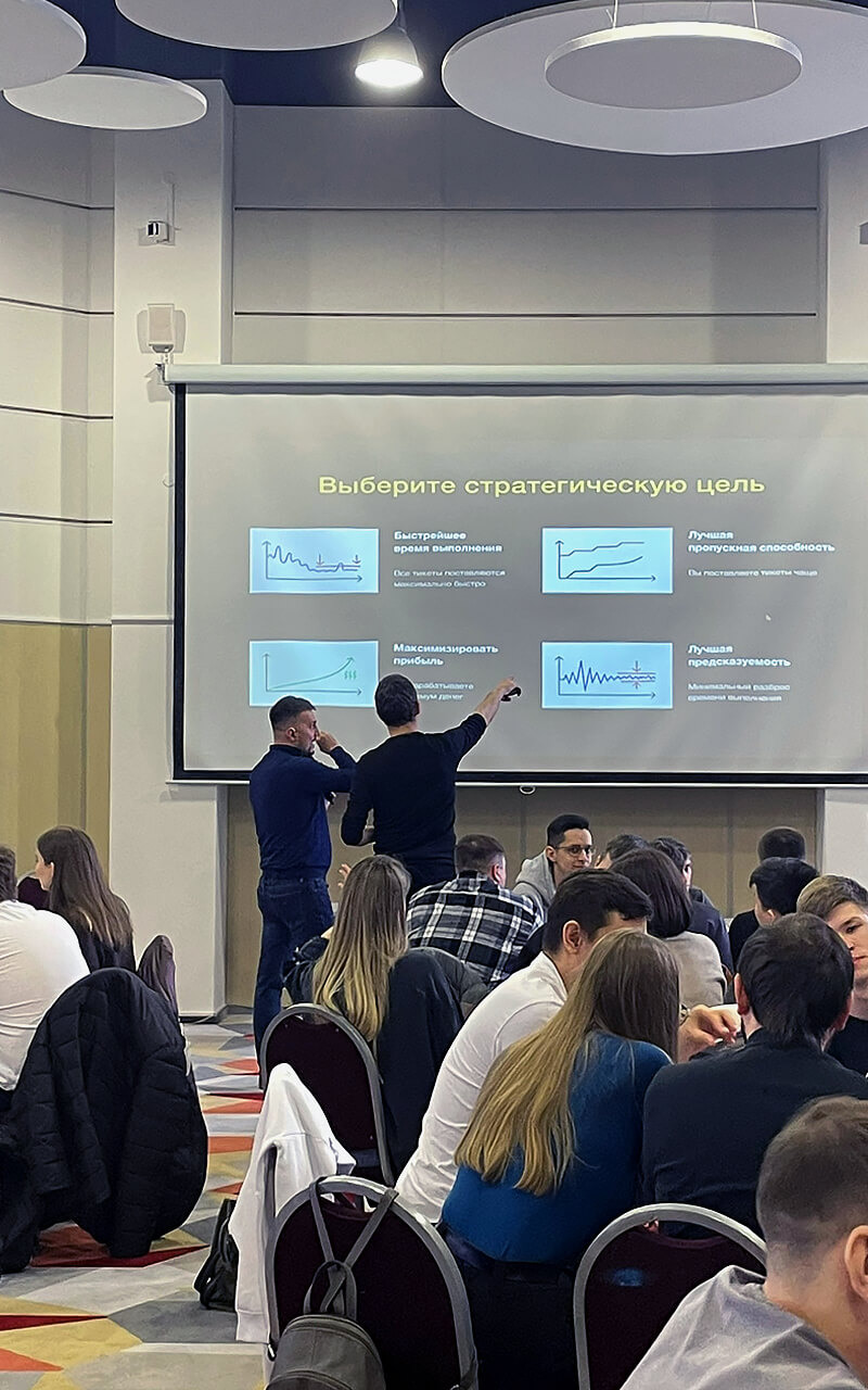 - 2Метрики. Научиться бизнес-метриками оцифровывать процесс, а не факт. Сколько, чего, когда будет? Lead-time, cycle-time, пропускная способность, эффективность потока, скорость реакции.